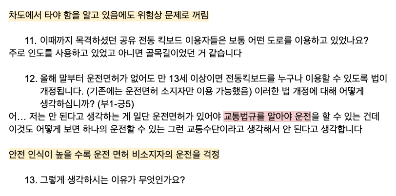 what: 공유 전동 킥보드에 대한 개개인의 경험을 듣고, 자세한 인식과 의견을 파악 - 영상 매체 분석
