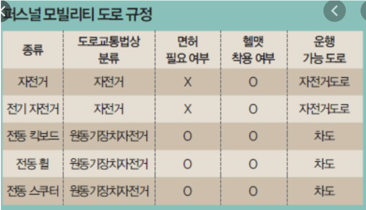 -차량에도 속하지 못하고 도보에도 속하지 못하는 기준에서 오는 교통법 부족