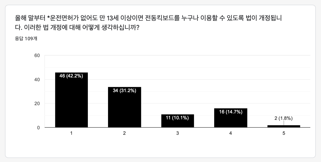 *3.올해 말부터 운전면허가 없어도 만 13세 이상이면 전동킥보드를 누구나 이용할 수 있도록 법이 개정됩니다. 이러한 법 개정에 대해 어떻게 생각하십니까?