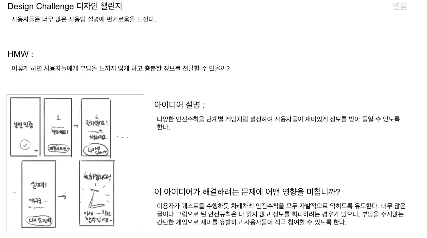 HMW : 어떻게 하면 사용자들에게 부담을 주지 않고 충분한 정보를 전달할 수 있을까?