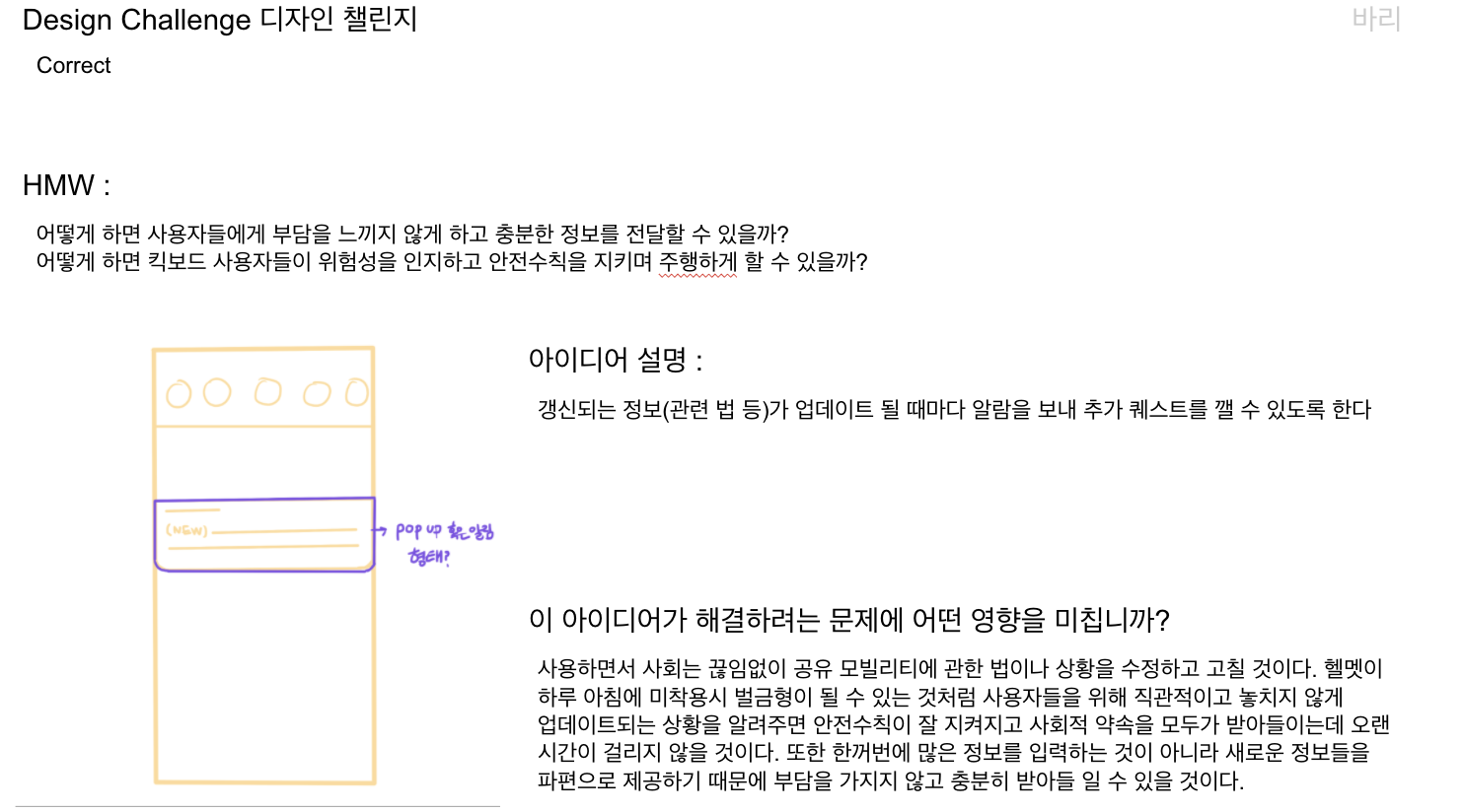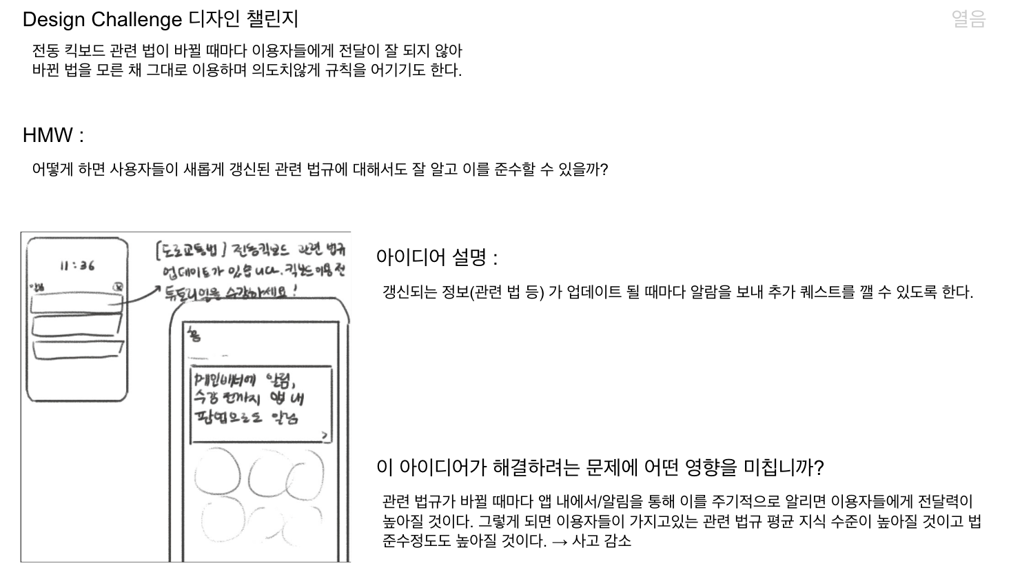 HMW : 어떻게 하면 킥보드 사용자들이 위험성을 인지하여 안전수칙을 지키며 주행하게 할 수 있을까?